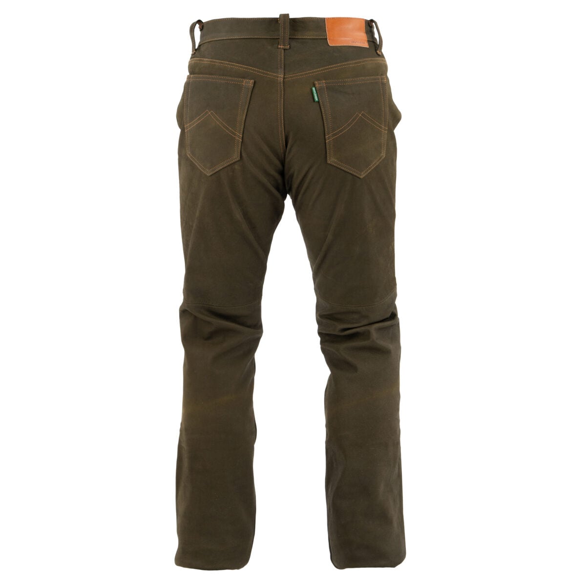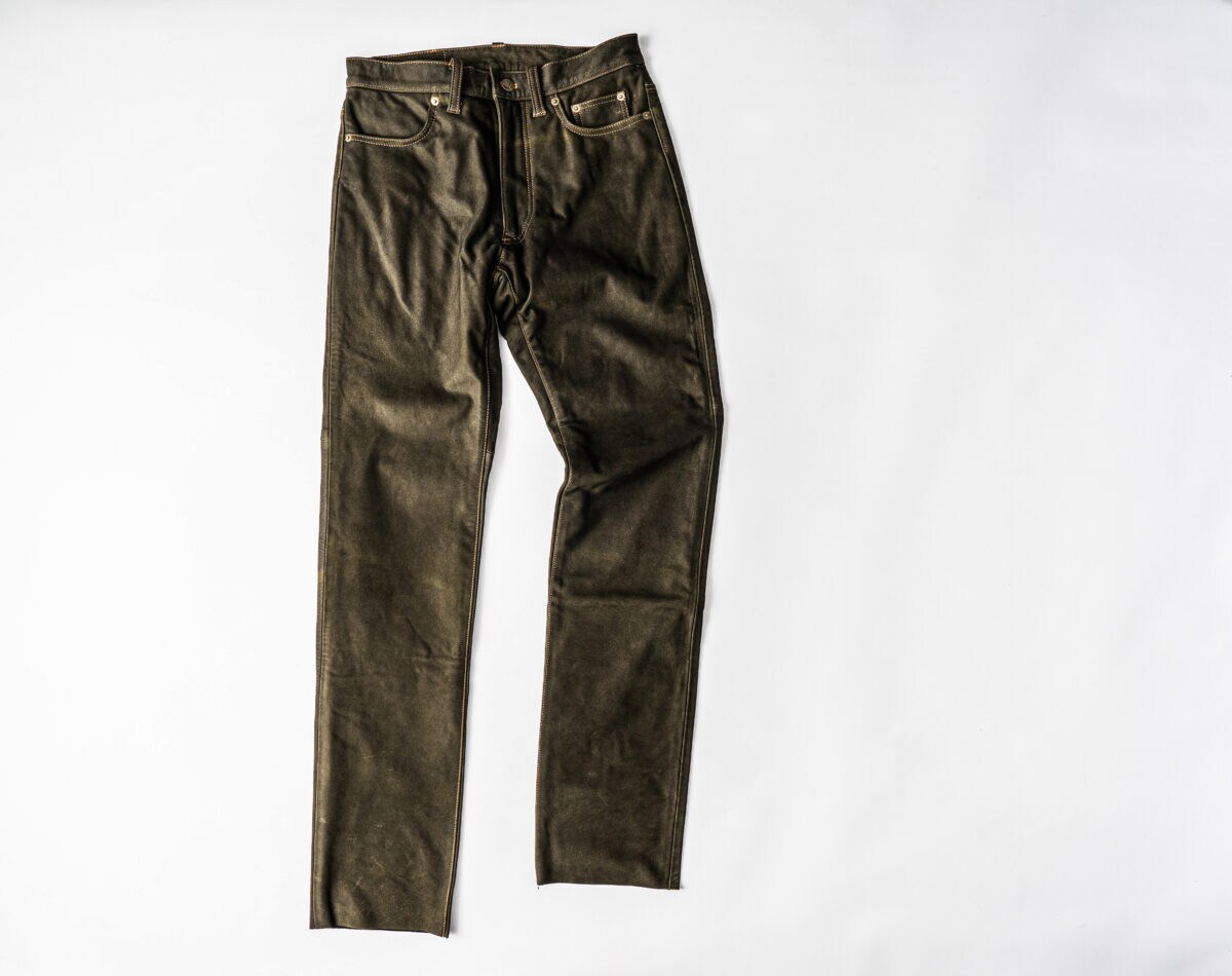 クシタニ独自の技術でつくる「エクスプローラージーンズ」は、天然皮革が本来持っている防風性、耐風性、透湿性を保ったままフッ素を浸透・結合させることで優れた撥水性を持ち合わせています。