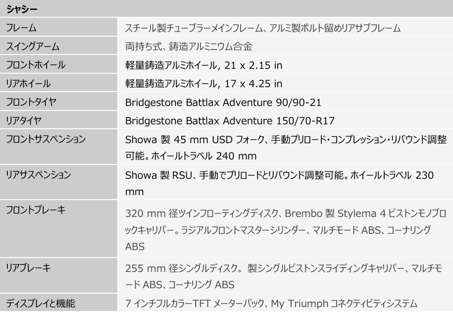 | Tiger 1200 Alpine edition | サテンクリスタルホワイト | ¥2,435,000 – |