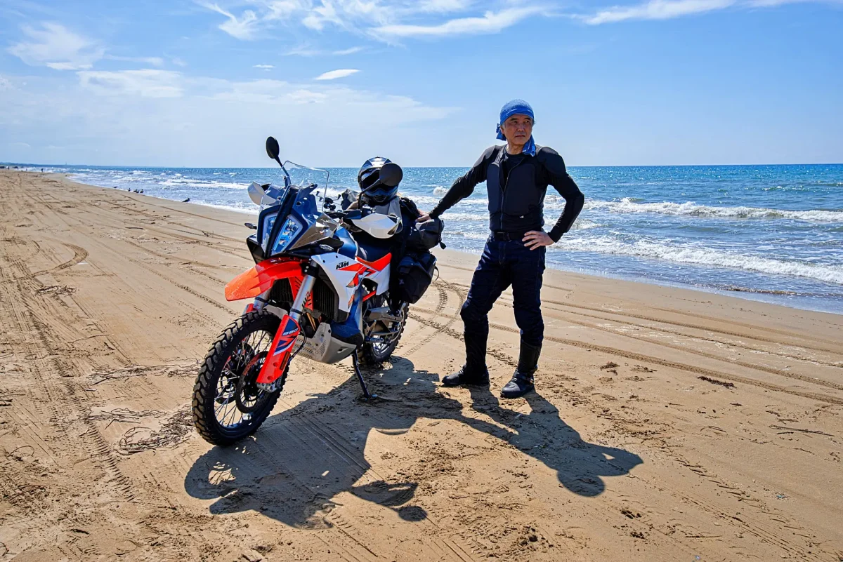 能登半島の付け根、約8km続く「千里浜なぎさドライブウェイ」は、いわずと知れたSSTRのメッカ。今年も全国から1万人を超えるライダーが参加しました。砂の粒子が細かく固く締まり、ロードバイクでも走行可能な砂浜です。波打ち際を潮風を感じながら走る爽快感は格別で、心に残る美しい夕日も堪能できます。