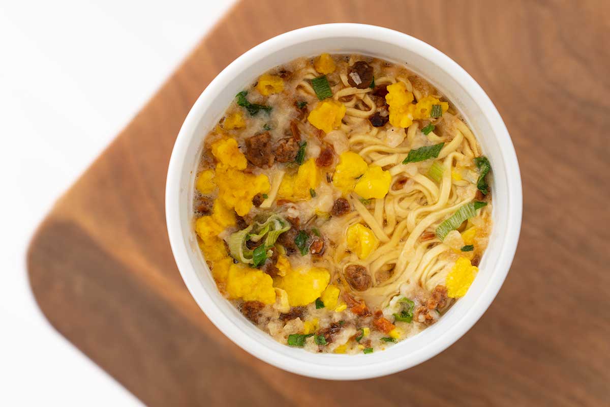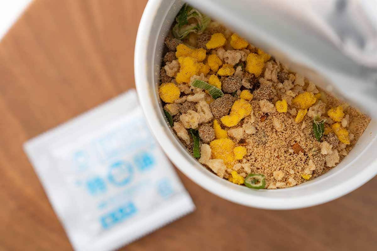 調理方法は、容器の中に熱湯を注いで4分待ち、仕上げに特製油を加えてよくかき混ぜるだけです。