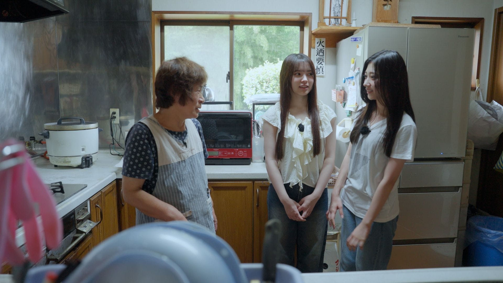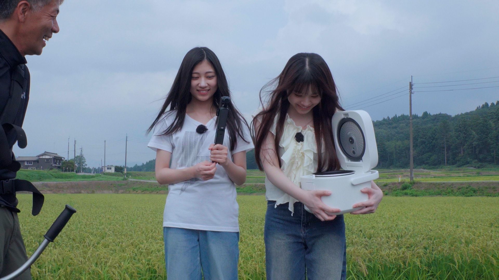 すると田んぼで作業している男性を見つけ、2人は「人がいる」「声をかけた方がいい?」ともじもじしながら思案する。勇気を出して声をかけると、その男性は米農家を営んでおり、2人が炊飯器を持っている経緯を話すと「米はいっぱいあるから」と快く家に迎えてくれた。そこで2人はお米のとぎ方を教わりながら、お米に合うおかず作りにも挑戦し…!?