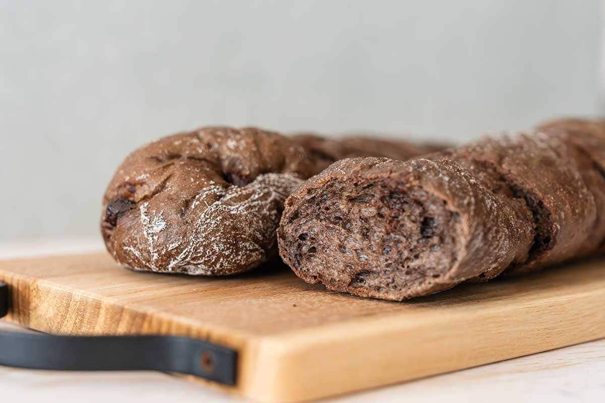 セブンプレミアムブランドから登場した本商品は、チョコ風味のフランスパン生地を香ばしく焼きあげ、12切にカットしたものです。