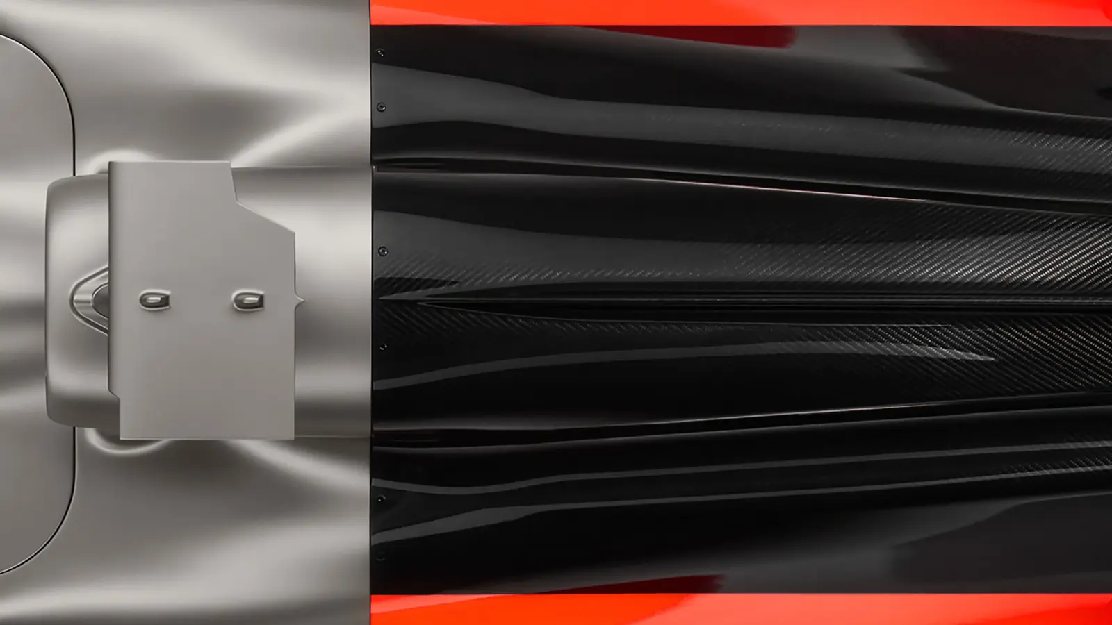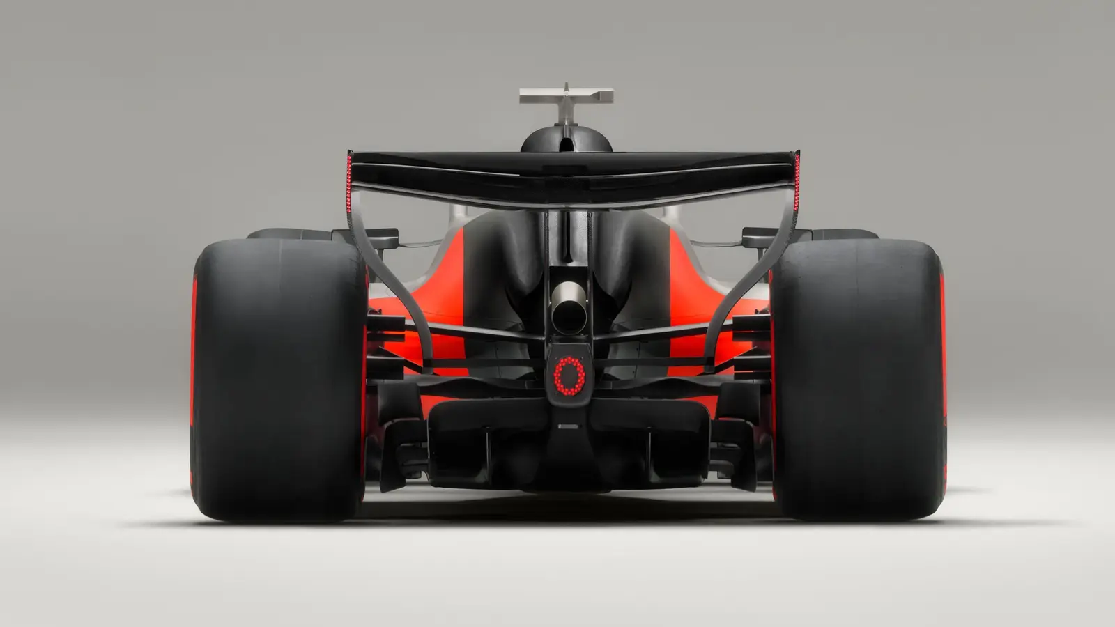 「精密な幾何学的カットによって定義された、ミニマリストなグラフィックサーフェス」に注目してほしい。そして、そのカラースキームも。カーボンブラック、チタン、そしてレッドという、純粋なアウディカラーだ。レッドと言えば、アウディは今後、「選択的に」赤いリングを取り入れ始めると述べた。日曜日にレースを観ていない全ての人々に、自分たちが日曜日にレースをしていることを知らしめるためだ。
