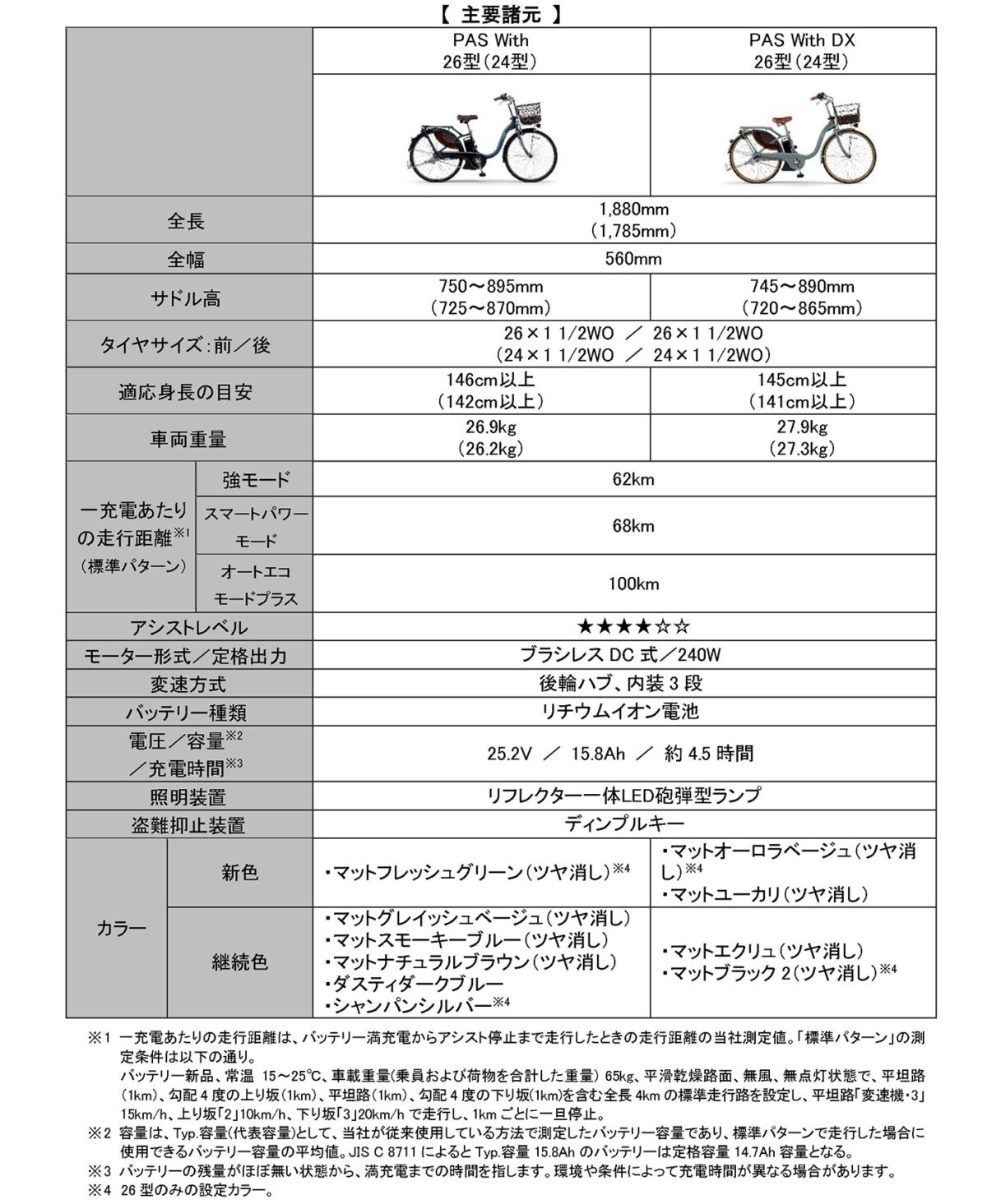 ヤマハ発動機株式会社は、電動アシスト自転車「PAS With」および「PAS With DX」の2026年モデルを2025年12月12日に発売すると発表した。