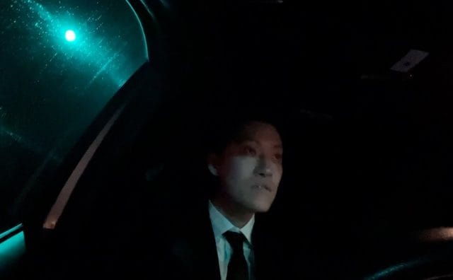 無言で車を走らせどこかへ向かう粗品