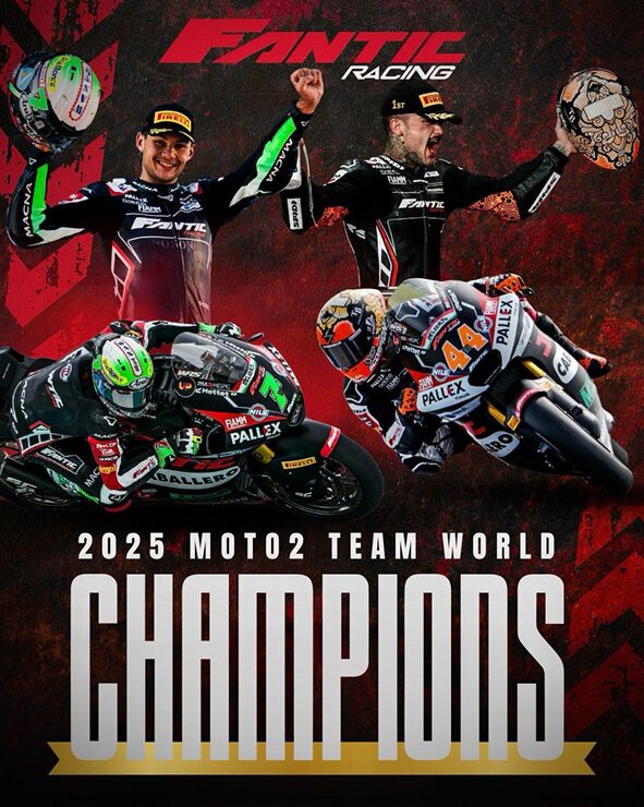 このタイトルは、一貫性、スピード、そしてチームスピリットの上に築かれた今季の傑出したパフォーマンスによって達成されたものである。そして、ファンティックにとって初のロードレース世界選手権のタイトルという快挙となった。シーズンを通して、バルタスとカネットは合計13回の表彰台を獲得。ファンティック・レーシングがMoto2クラスの中で最も競争力があり、かつ安定したチームの一つであることを証明した。