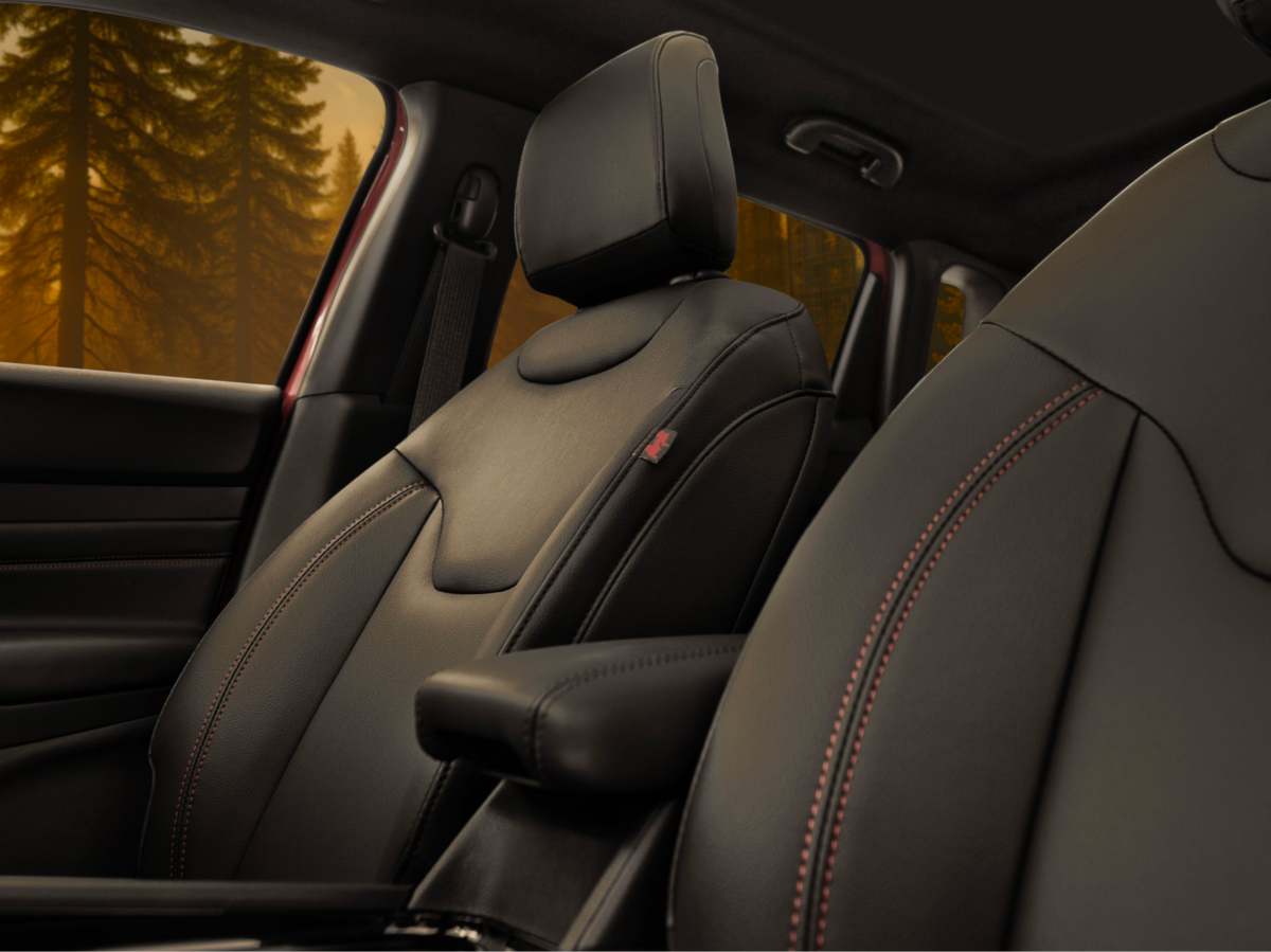 従来のクロームアクセント部位に「ニュートラルグレー」と「グロスブラック」を採用し、本限定車では、ベースモデルより1インチ大きい18インチグロスブラックホイールを装備しています。また、リアにはカモフラージュ柄にレッドの「TRAIL」文字が際立つ専用バッジを装着し、落ち着いたブラック&グレーの装いにレッドのアクセントの効いた、個性的なデザインです。