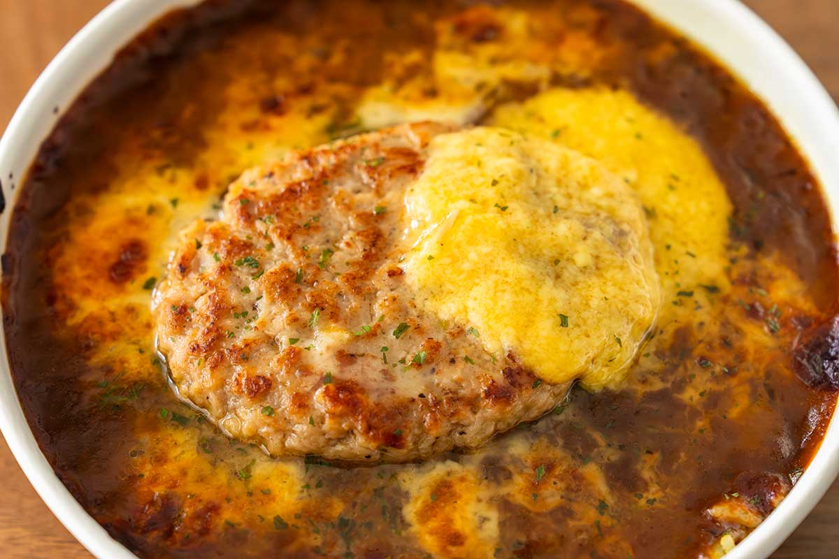 肉のうまみやたまねぎの甘みなどを堪能できるカレードリアに、ハンバーグとチーズがトッピングされた夢のような一品は、期待通りのおいしさを楽しむことができました。
