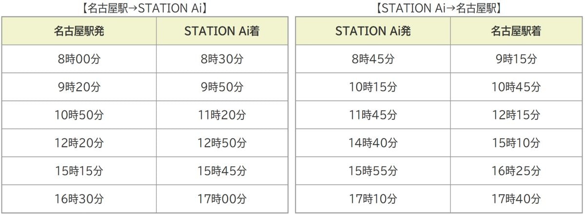 区間は名古屋駅(広小路口)~STATION Ai東側駐車場の往復。平日6便、定員7名で、利用は事前予約制。期間は25年11月10日(月)~26年3月31日(火)。土・日・祝および年末年始は運休となります。