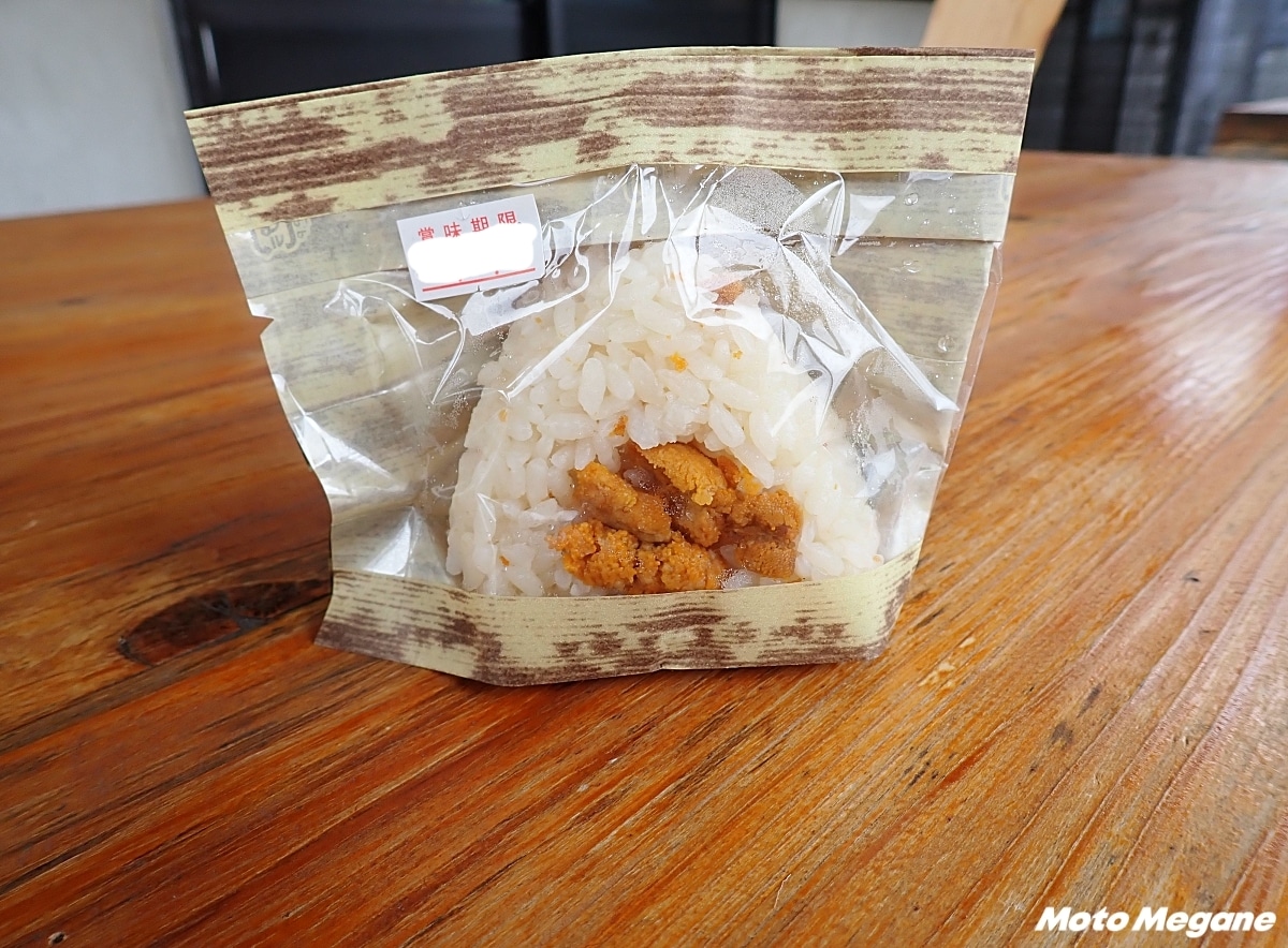 月土日祝日のみ販売。ウニと釡石産のひとめぼれと特製スープで炊いて作られている。ウニの濃厚な旨みと磯の風味を楽しめると人気の品。数量限定なので、購入するなら早めの時間がおすすめだ。