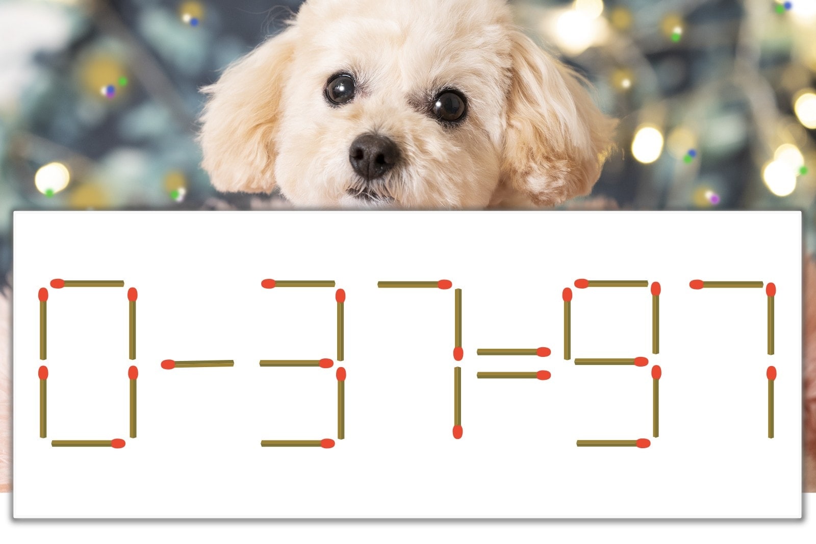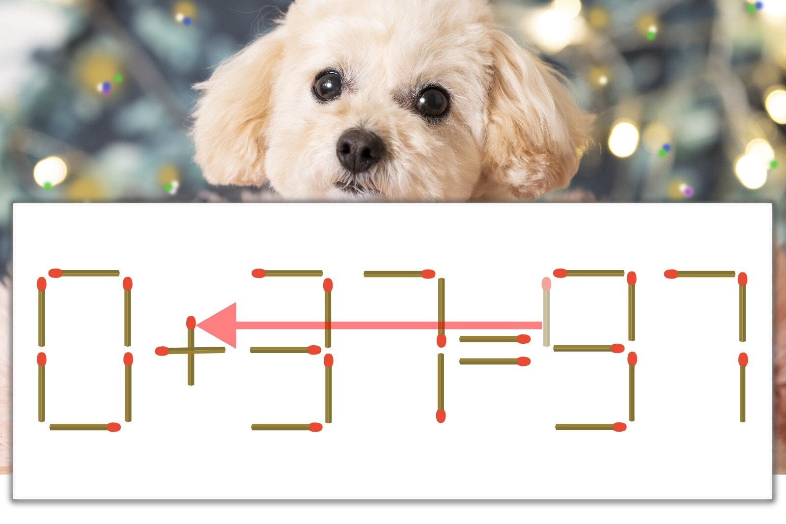 「9」を別の数字に変化させると答えが導き出せます。「9」のマッチ棒を1本移動して、「-」を「+」にしてみましょう。すると、「0+37=37」が成立します。