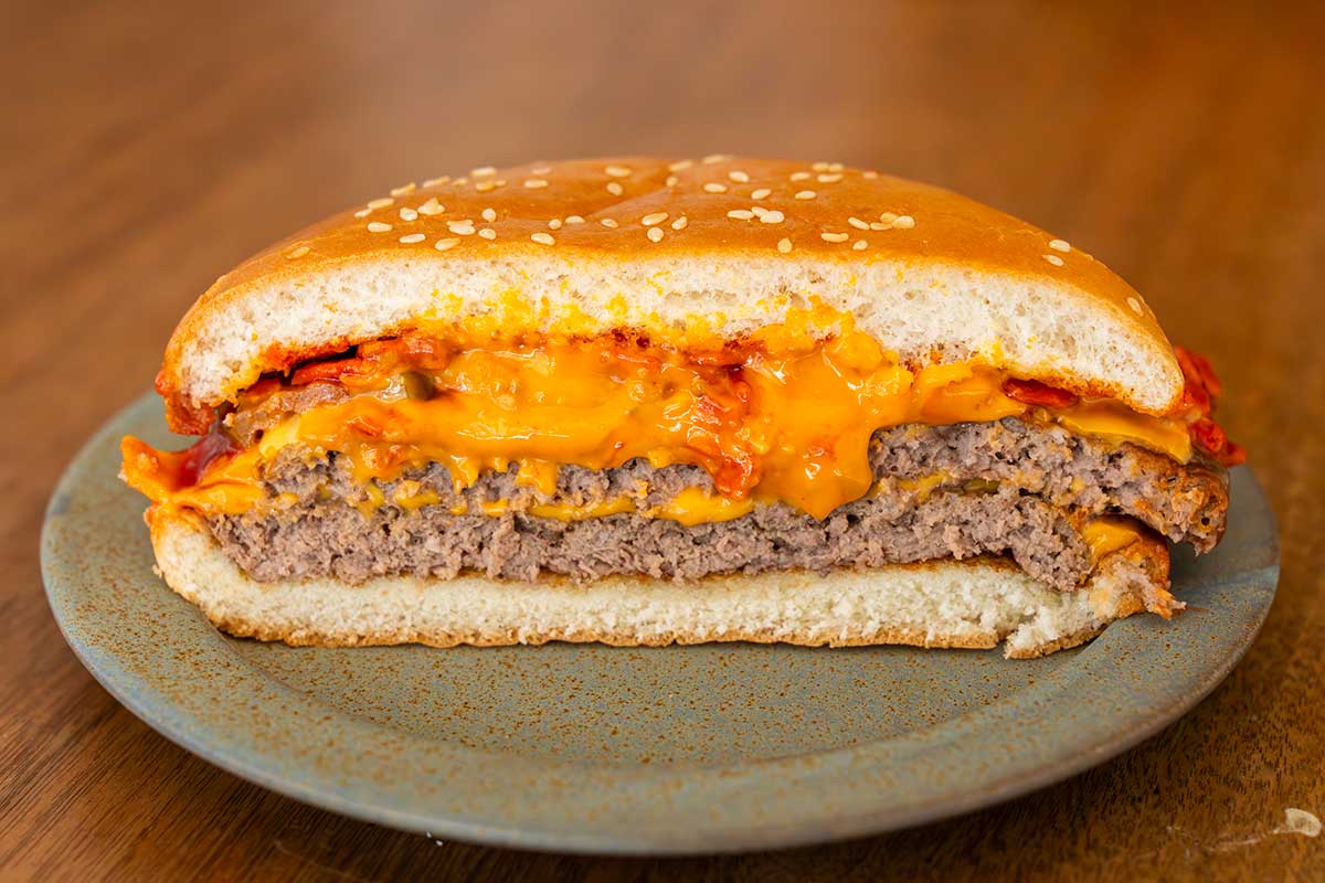 次は断面チェック。ビーフパティが2枚サンドされているので、ボリューム感がスゴいです。