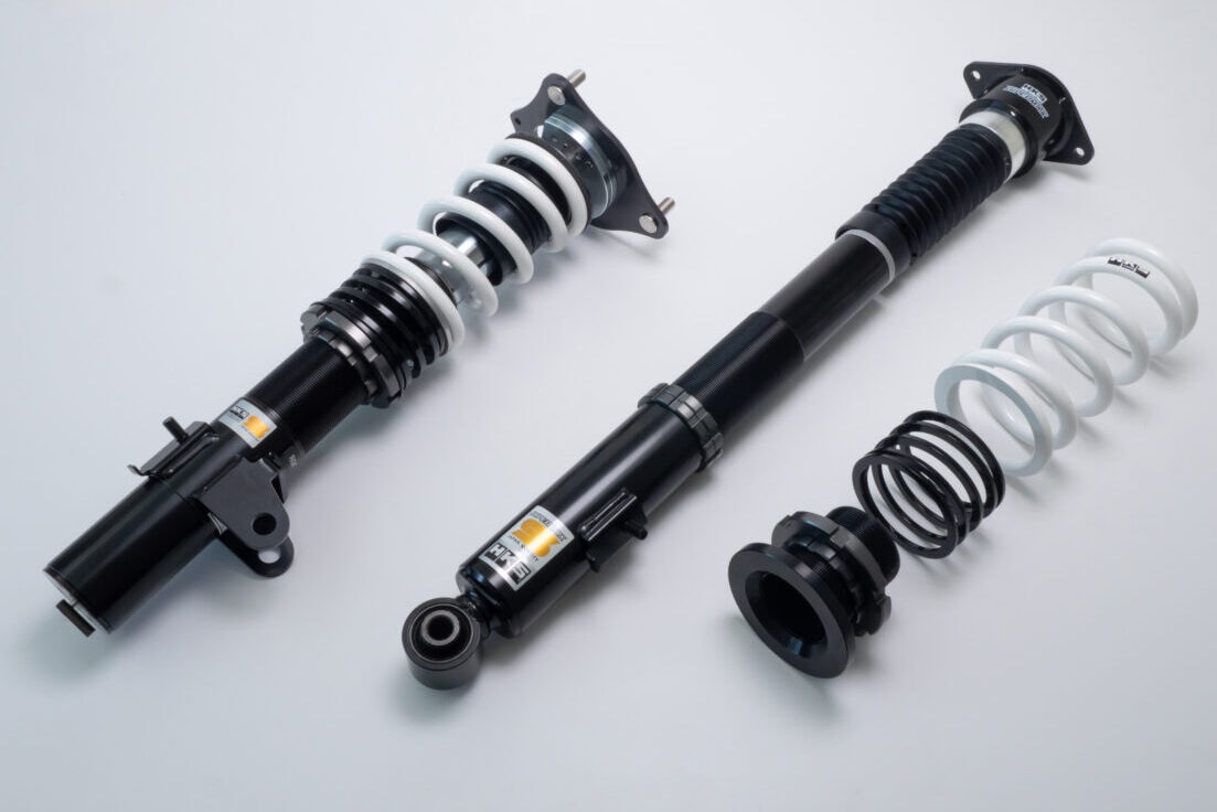 また前後とも30段階の減衰力調整機能を備えているので、街乗りからサーキット走行まで幅広く対応。フロントにピロアッパーマウント※を採用するなど、細かなセッティングに対応するのも大きな魅力。電子制御サス用キャンセラーが付属しているので、チェックランプが点灯する心配もありません。