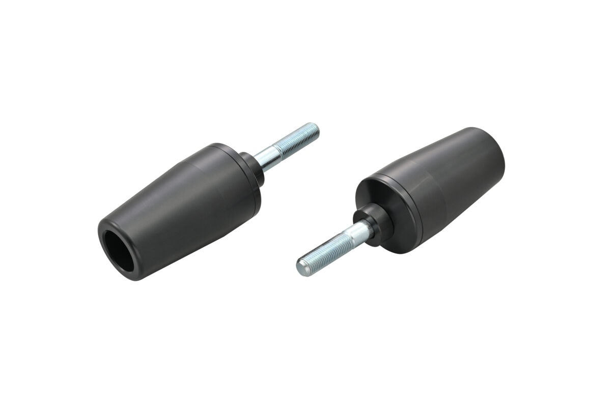 流線形の樹脂パッドが転倒時の衝撃を吸収しマシンへのダメージを緩和。アルミプレートは転倒時のボルト変形を防ぎ、機能とドレスアップを両立します。車種毎に適正な張り出し量を設定しています。左右セット。※当社エンジンガード(品番:62415)の同時装着が可能です。(意匠登録 No.D1762940)
