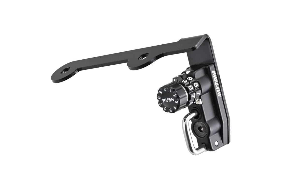 ダイヤル式でカギが増えないヘルメットホルダー。車種専用設計なのでボルトオンで装着できます。(意匠登録 No.D1762940)