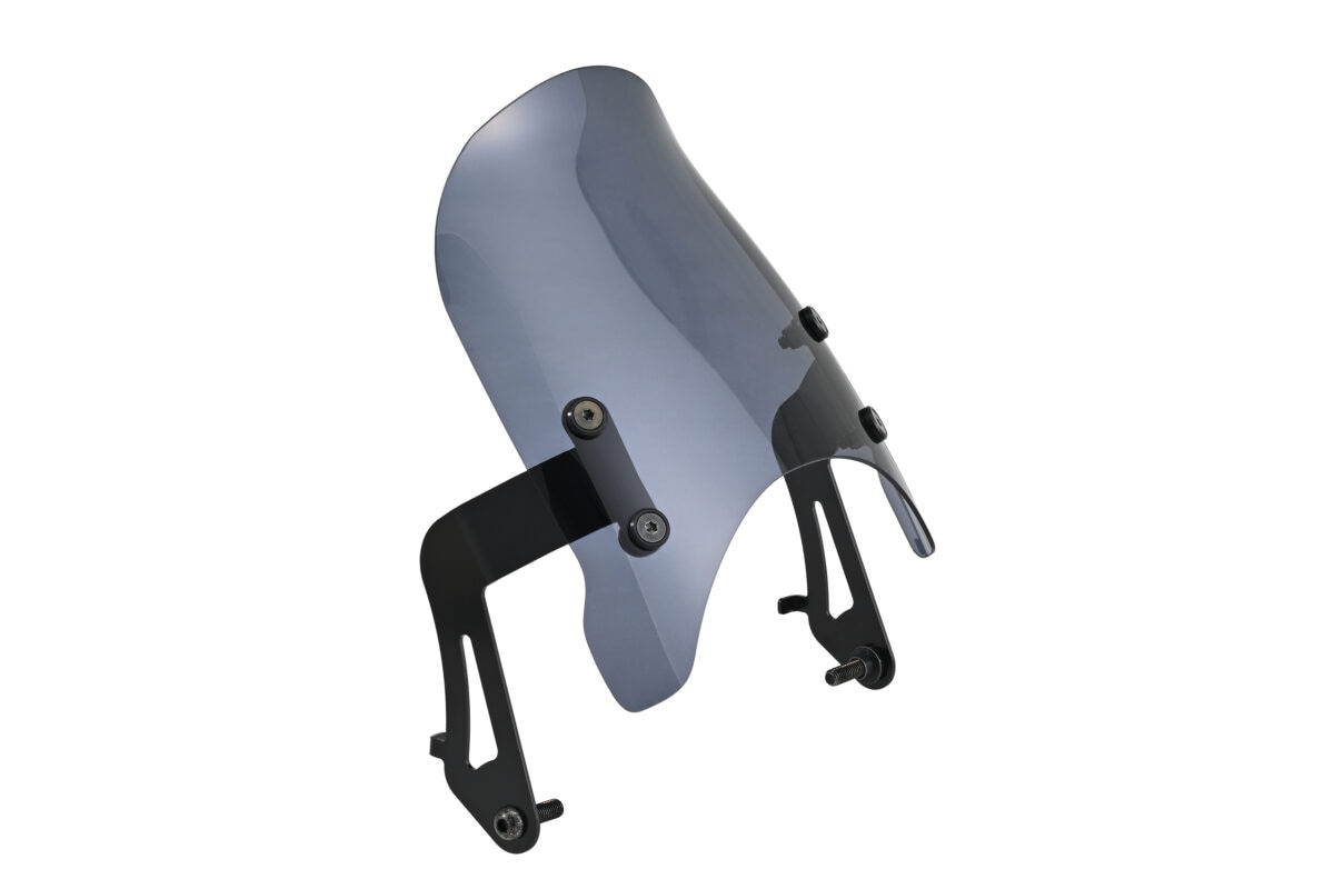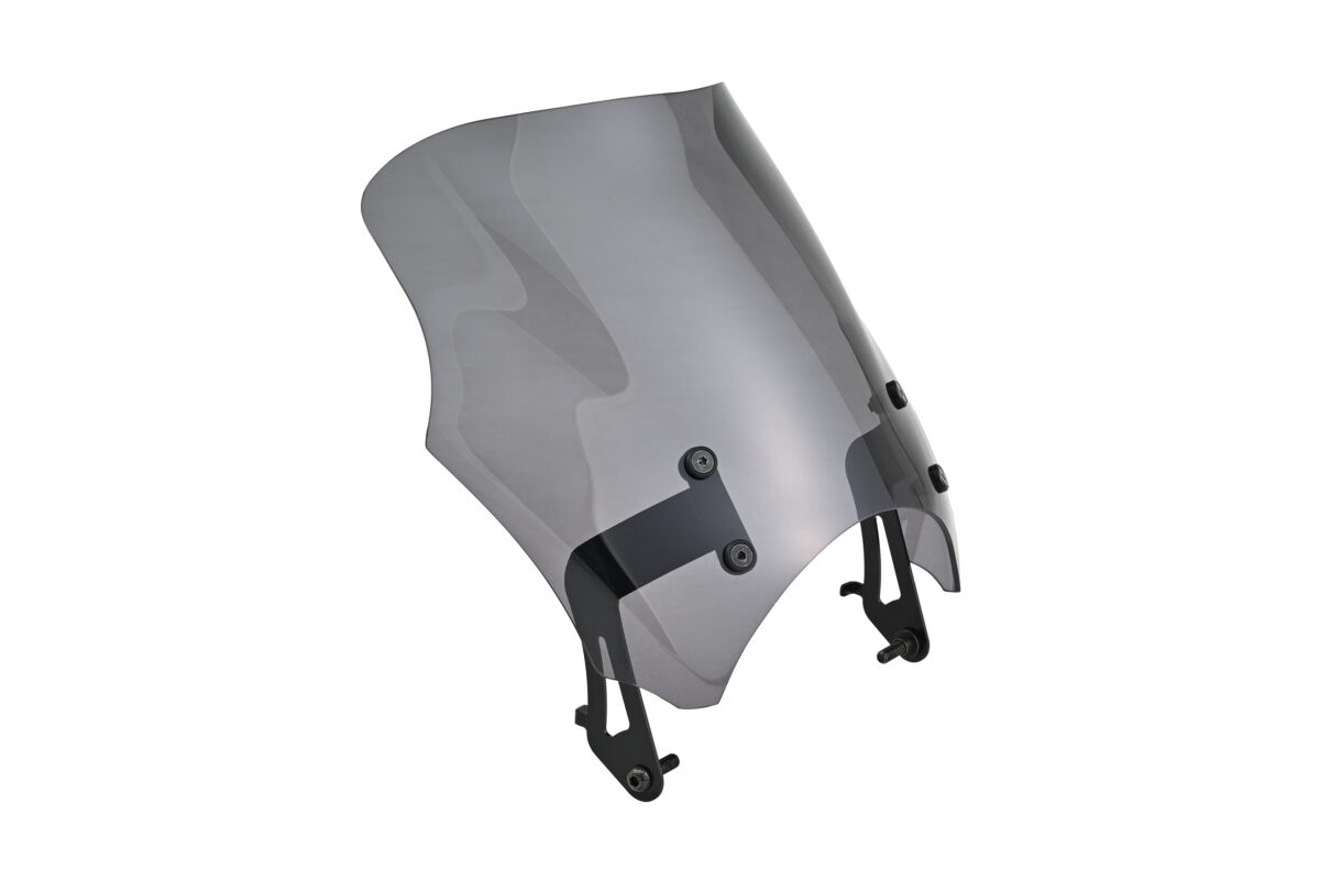 高い透明度と耐久性を両立する、日本製のポリカーボネイト(厚さ2mm)を採用したミニバイザーです。車体のフォルムを崩さないデザインが、フロント周りをスタイリッシュに演出します。スクリーン色:スモーク。