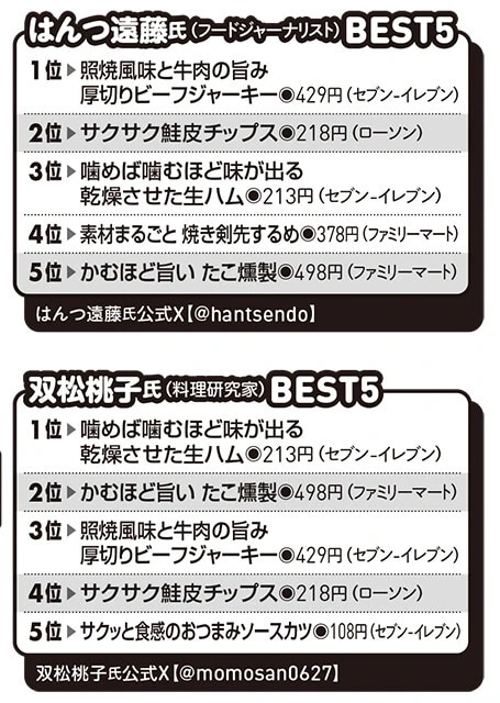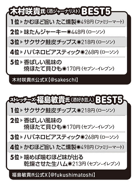 そして、MVOは全員がBEST5に入れた「サクサク鮭皮チップス」(ローソン)と「かむほど旨い たこ燻製」(ファミマ)に決定です!