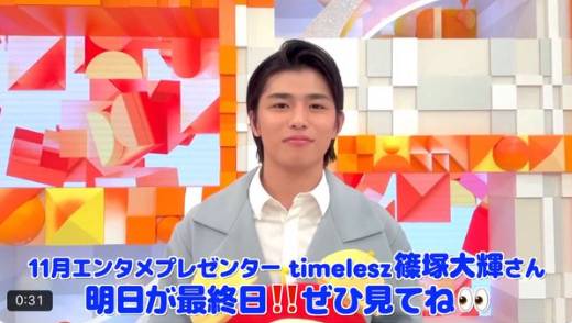 11月18日放送の『めざましテレビ』(フジテレビ系)で、男性人気アイドルグループ「timelesz」(登録者数万人)の「篠塚大輝」が披露した“一発ギャグ”に批判が殺到しています。