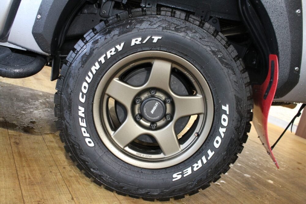 「サスペンションでフロントのみ2インチアップ。ホイールのインチ数は変えずに社外アルミを装着しています。派手になりすぎないよう、見た目のバランスも大事にしています」