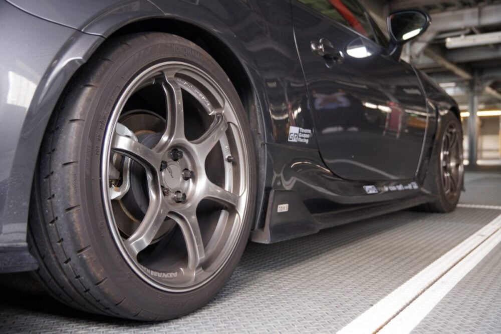 「RAYSのZE40とNE24。あとはADVAN GT-beyondと迷いました。でも、SNSでつながっている人が装着していたADVAN RG-4のカラーリングと細い6本スポークに惹かれました」