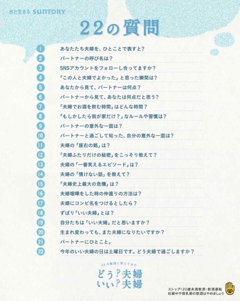 8割以上が「いい夫婦」 サントリーホールディングス調査、平均81.3点です!