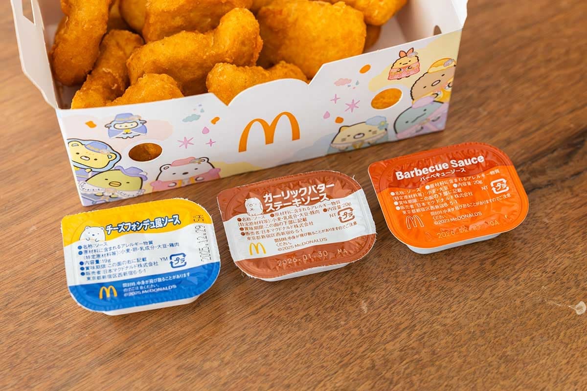 「チキンマックナゲット15ピース」のパッケージ*も、期間限定ソースのパッケージも、「すみっコぐらし」とコラボレーションした、オリジナルデザインです。