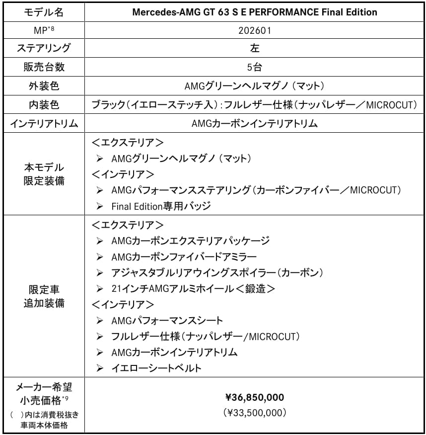 (全国限定 GT 53 Final Edition: 30台/GT 63 S E PERFORMANCE Final Edition: 5台)