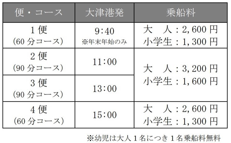 琵琶湖汽船は、2025年12月8日(月)~2026年3月6日(金)までの期間、冬期ダイヤで運航。大津港からは平日「南湖遊覧ボート」、土日祝・年末年始「ミシガンクルーズ」、今津港・長浜港からは「竹生島クルーズ」を運航します(今津航路は土日祝のみ、長浜航路は毎日運航)。また、大津港乗船者限定で冬期限定デザインの「南湖遊覧ボート」御船印(1枚500円・税込)も販売されます。