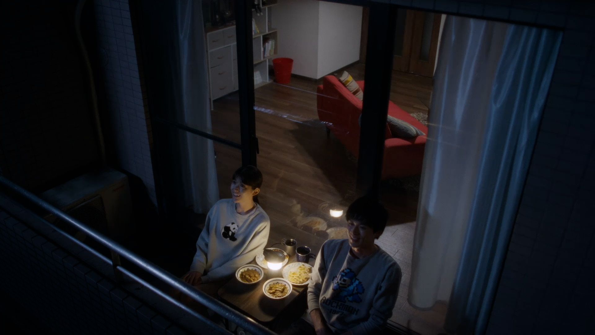 そして、ベランダにテーブルを出し、キャンプ気分で夕食をとる2人。すると、夫が「俺は君と結婚して本当に幸せだよ」とつぶやく。妻は互いに同じ気持ちだったことに幸せをかみ締めながら、「私も」とほほ笑むのだった。