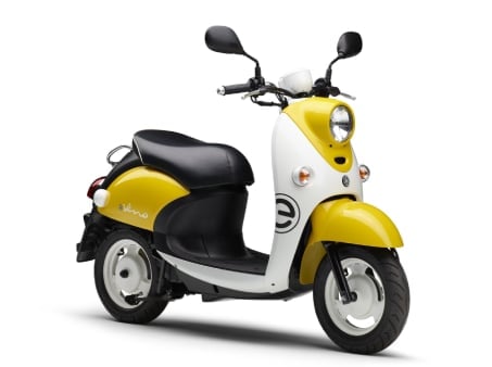 「イービーノ」はビーノのEVタイプ。デザインはビーノと同じですが、ボディ側面に「e」のロゴがあしらわれています。