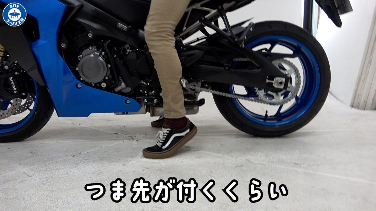 つま先がつくぐらい、決して足つきが悪いわけではないんですが、信号待ちで気を抜くと、、、ぐらッときそう。