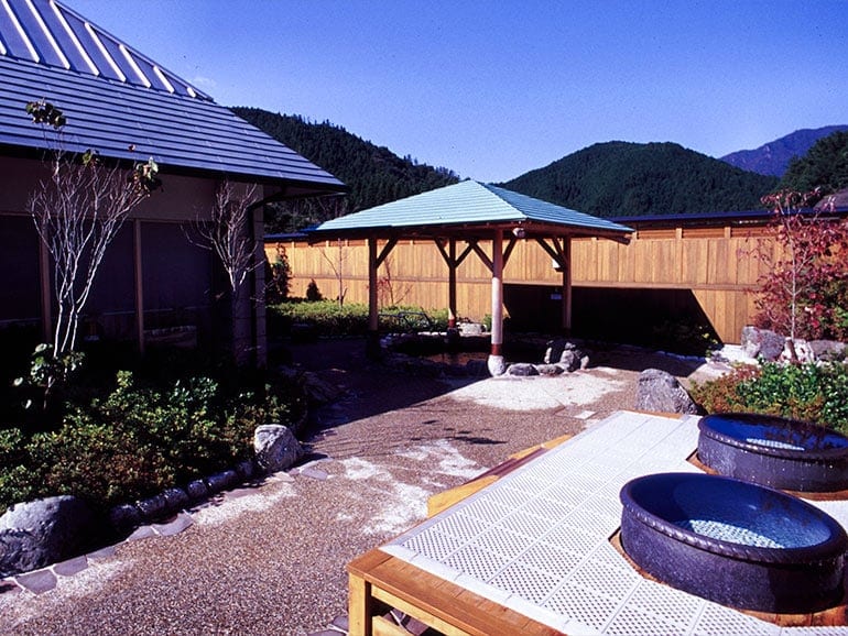 吉野杉に囲まれた山里に位置し、ホテル杉の湯の温泉を日帰りで利用できます。