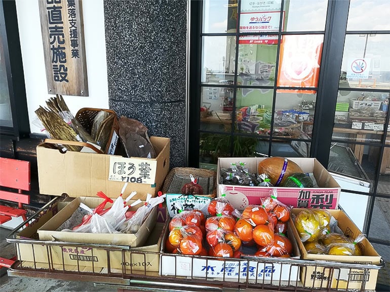 販売店では野菜や農産加工品を扱い、自動販売機も充実しています。