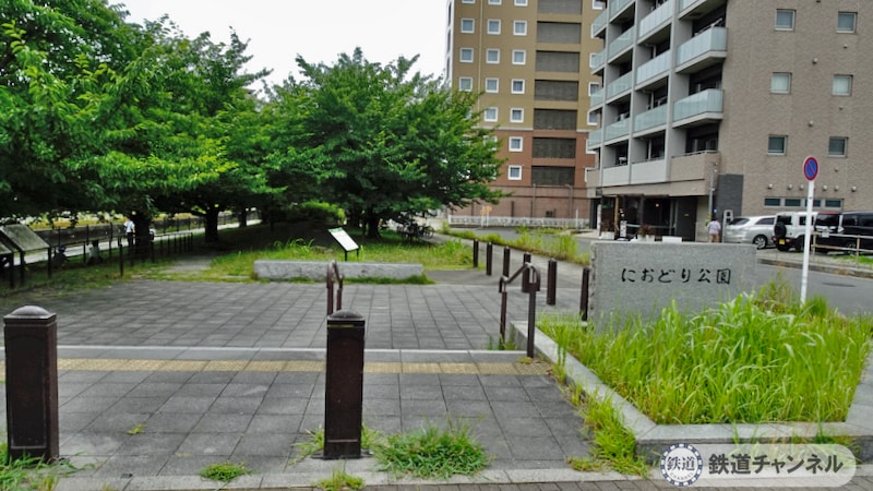 ランチをいただいた蕎麦屋さんの角を曲がらずに真っ直ぐ進みました。「におどり公園」の北西側の端です。右の道路に沿って右に曲がるとクロワッサンの「パティスリー レ・コロレ」です。