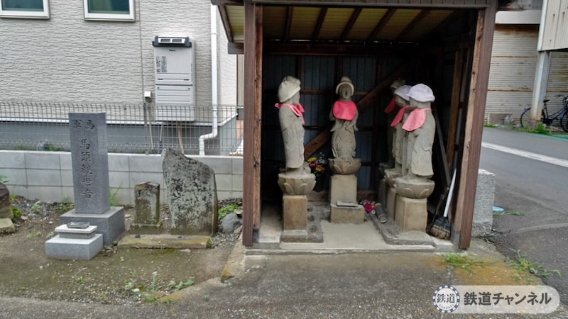お地蔵様の小屋の外に馬頭観世音菩薩の石碑が3体あります。右の2体が古そうです。