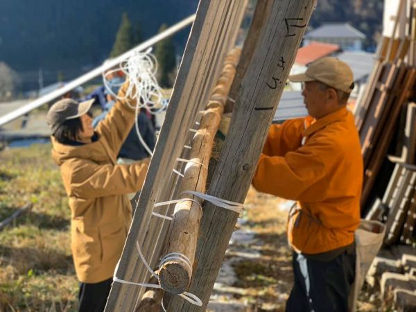 岐阜県飛騨市で土蔵の雪囲い 関係人口拡大に向け住民と市外の人々が協力して冬支度