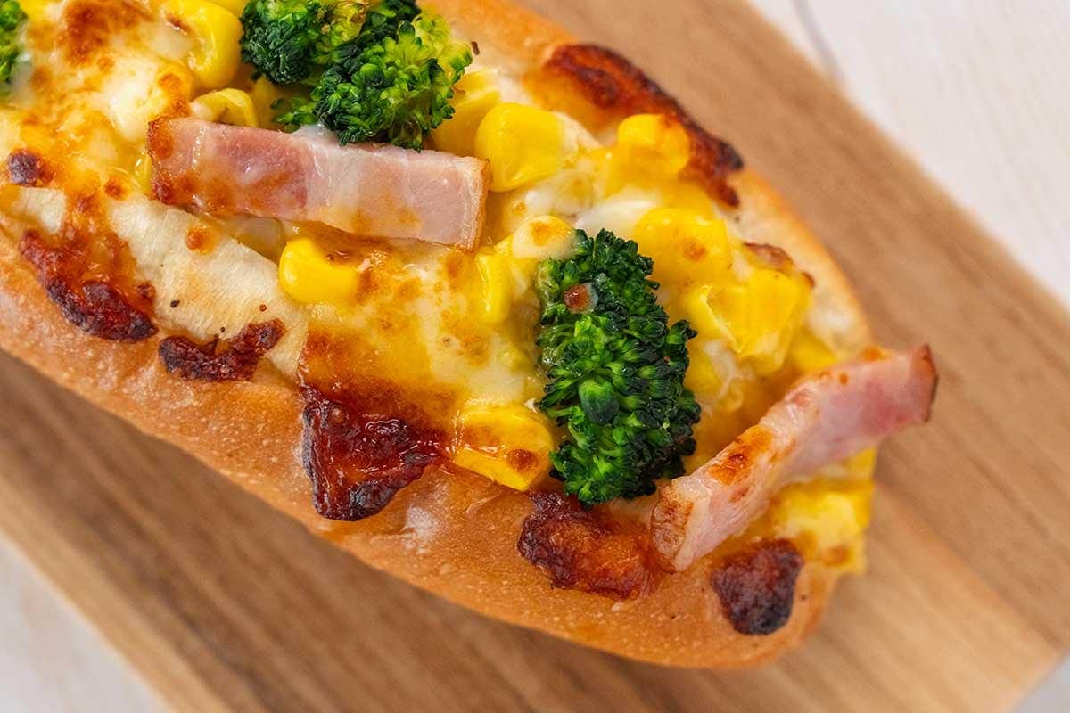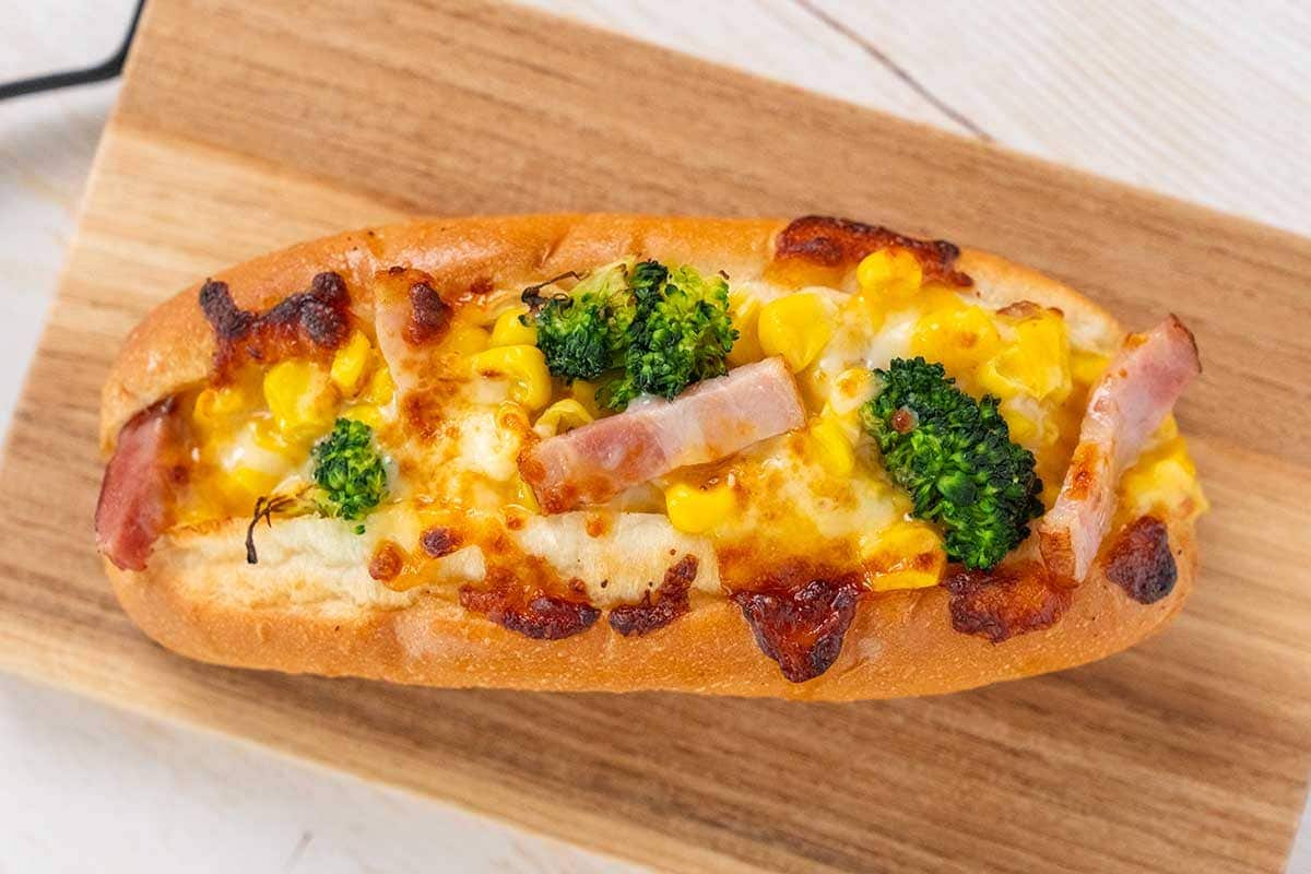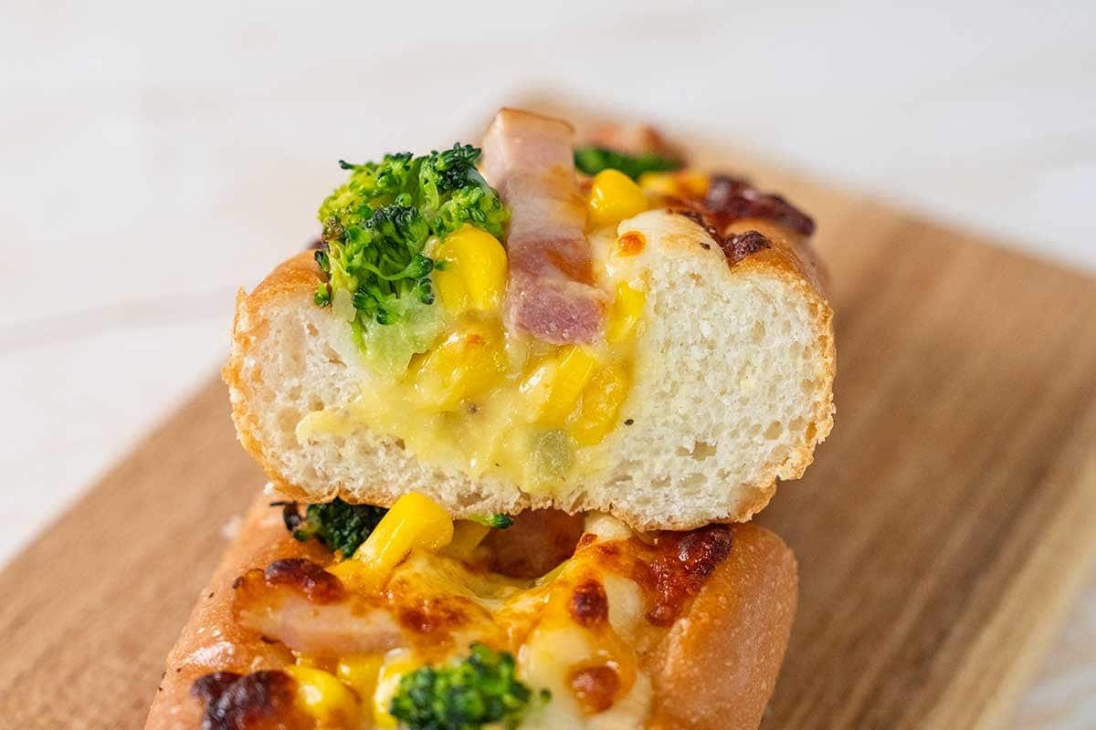 パン生地の表面は、硬いわけではないけれどパリッと張りのある食感で、中はふんわりとした仕上がりに。香ばしいパン生地に、コーンの甘みとベーコンのうまみ、チーズのコクを感じる具材が絶妙にマッチしています。ブロッコリーとコーンの食感やふわっと香るブラックペッパーも◎。まるでコーン入りのクリームシチューを食べているような味わいで、とてもおいしいですね。