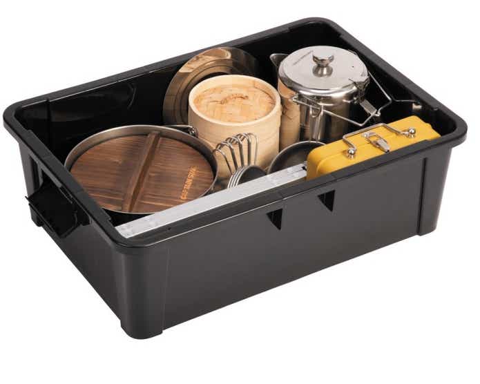 汚れたカトラリーやフライパンもひとまとめに入れておけば、家でまとめて洗えてラクちん。複数持ちしておくと、調理道具の仕分けにも便利です。