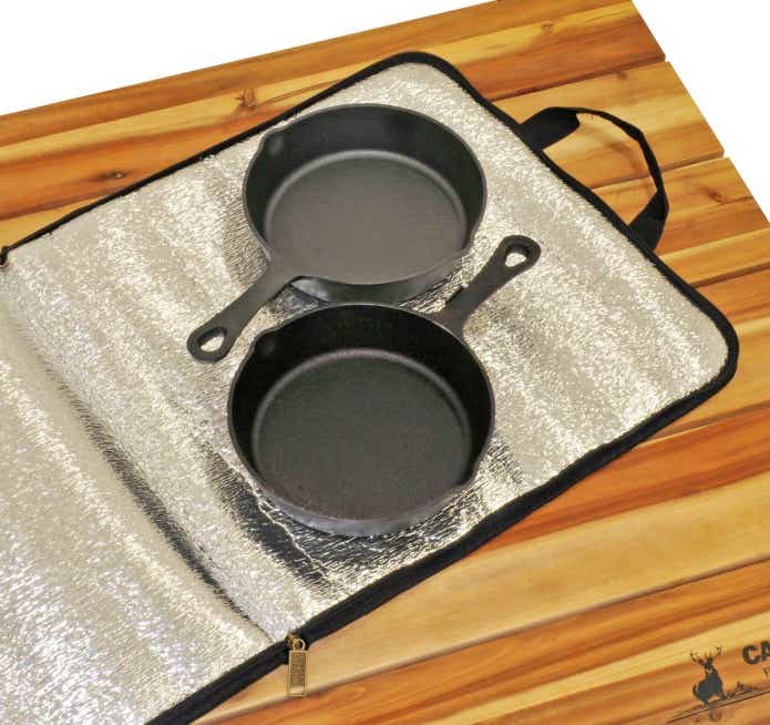 厚さは約3cmながら、発泡ポリエチレンフォーム入りでクッション性はしっかり確保。重さのある調理器具でも周囲を傷付けにくいのが安心ポイントです。