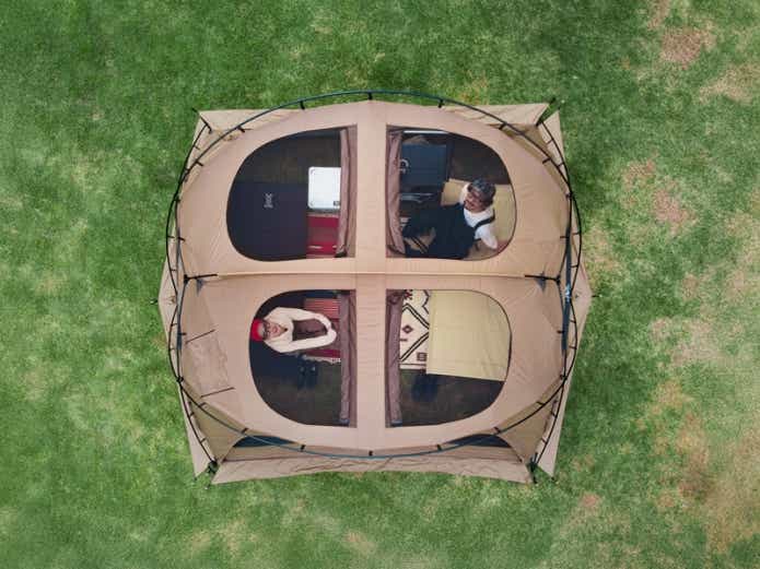 寝室として使える「ガシーンテント」を連結すれば、広々とした2ルームテントのような構造に変身します。