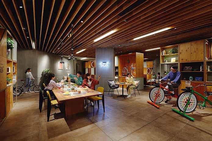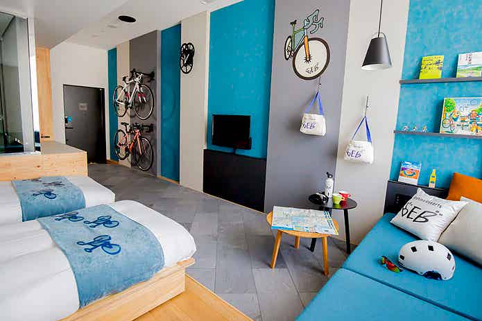 館内には、自転車をそのまま持ち込める客室や、自転車をテーマにしたさまざまなアクティビティが用意されており、普段自転車に乗らない方から生粋のサイクリストまで、あらゆる自転車旅のニーズに応える工夫がされています。