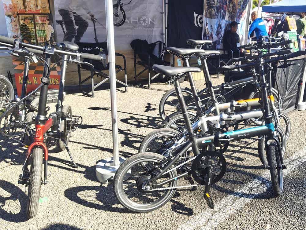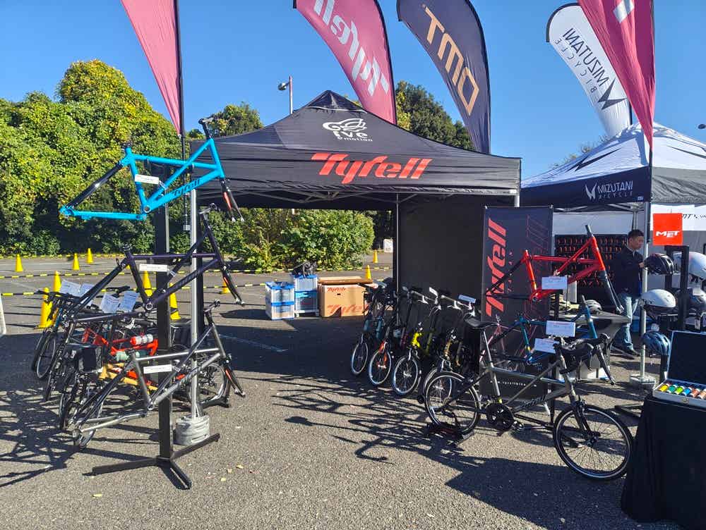 「走れるミニベロ」として人気が高いタイレルは、折りたたみモデルからチタンフレームのハイエンドモデルまでそろっていました。