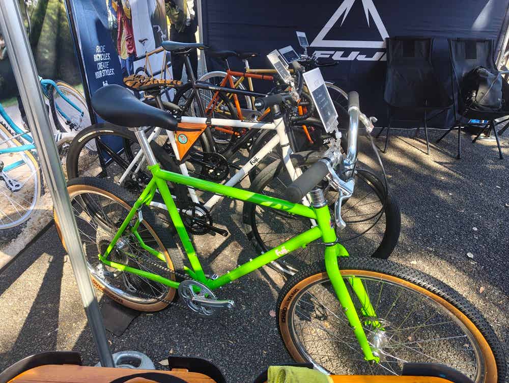 FUJIブースには、ロードバイクだけでなくクロモリフレームのおしゃれな街乗りバイクも。