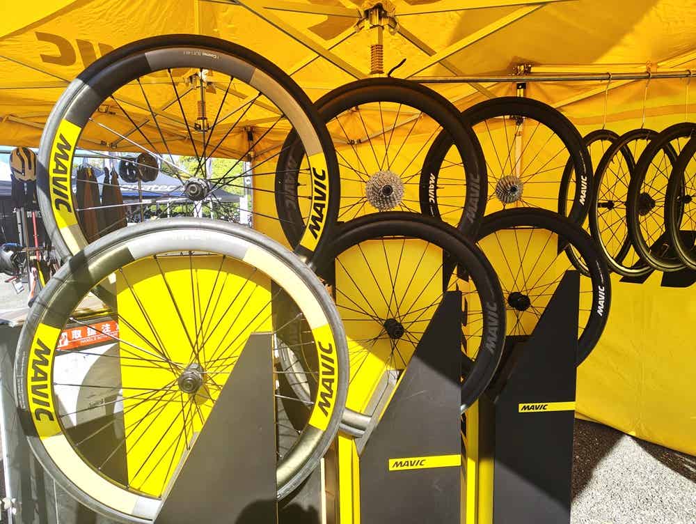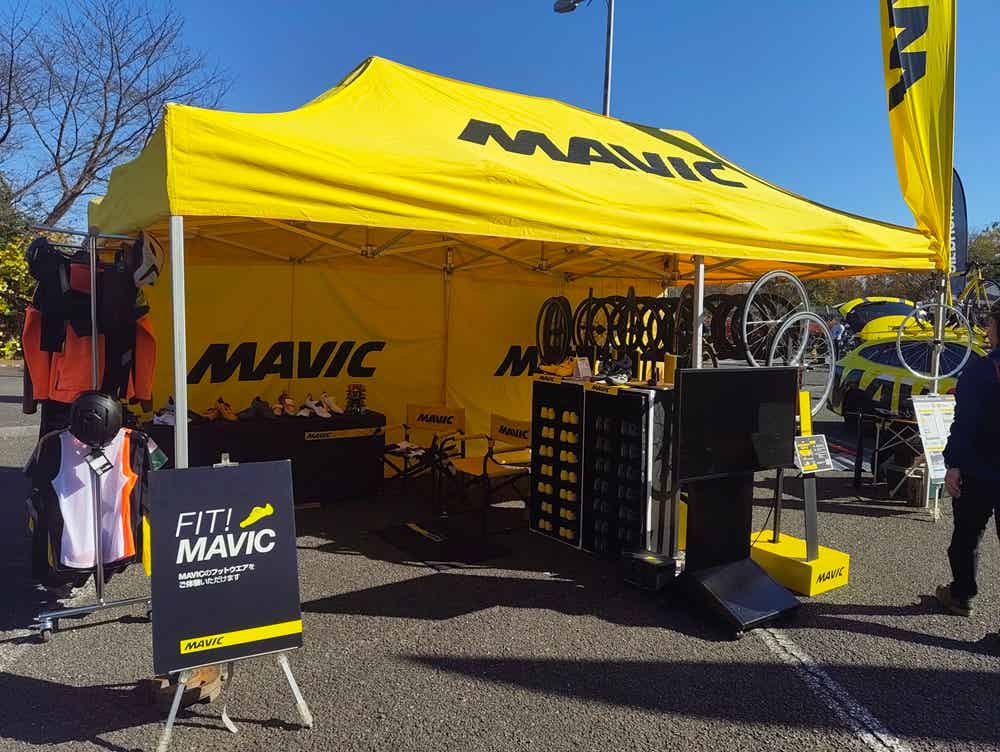 マビックはシューズやホイールなどのラインナップが充実していて、ご自分のロードバイクに取り付けて試乗も可能です。