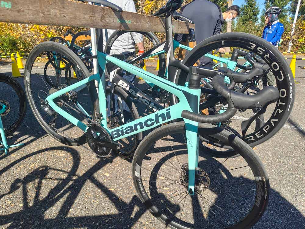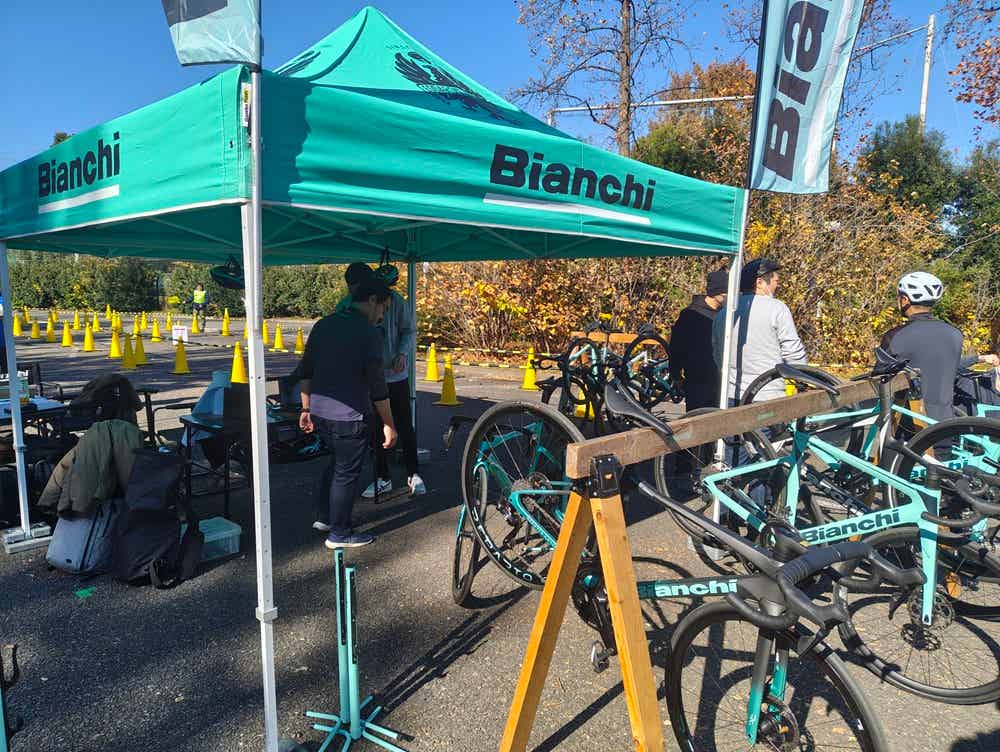 ビアンキブースでは、人気のチェレステカラーのロードバイクがそろっています。