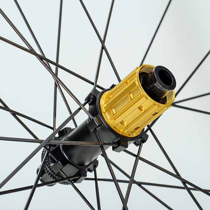 ハブには、優れたパワー伝達性を発揮する面ラチェット36Tフリーボディを搭載。ハブボディには、剛性・耐久性の高いアルミ削り出しのストレートスポーク専用モデルが採用されています。
