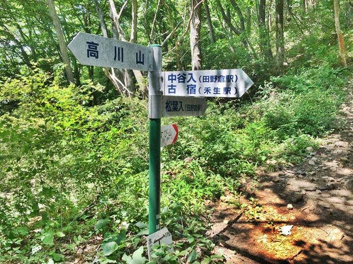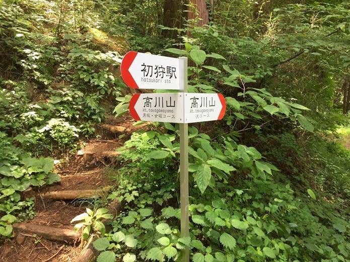 駅を出ると、高川山への標識があるので、矢印に従って歩きましょう。