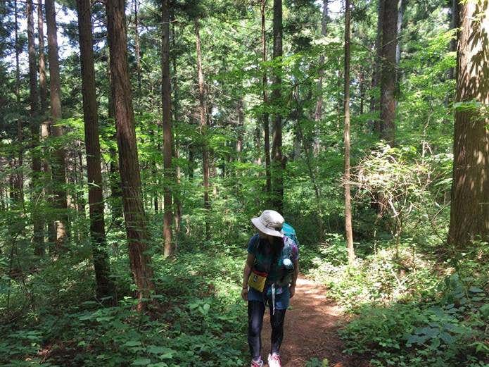 高川山へは、気持ちの良い樹林帯の登山道を歩きます。山頂までほぼ展望はありませんが、森林浴をしながら登ることができます。