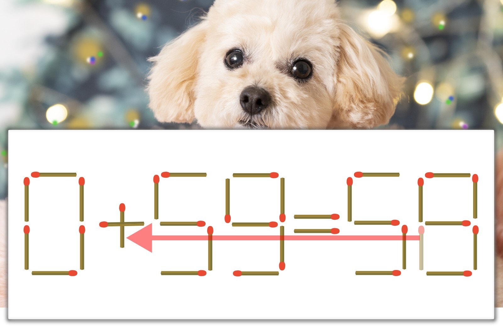「8」を別の数字に変化させると答えが導き出せます。「8」のマッチ棒を1本移動して、「-」を「+」にしてみましょう。すると、「0+59=59」が成立します。