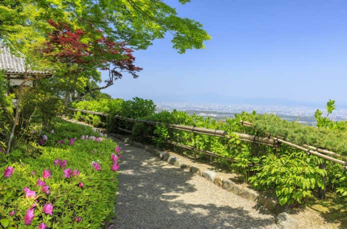 比叡山へは、京都府側、滋賀県側のどちらからでもアクセス可能。山頂には花々が咲き誇るガーデンミュージアムや展望塔があります。展望塔からは、京都の街や琵琶湖の雄大な景色を堪能することができます。